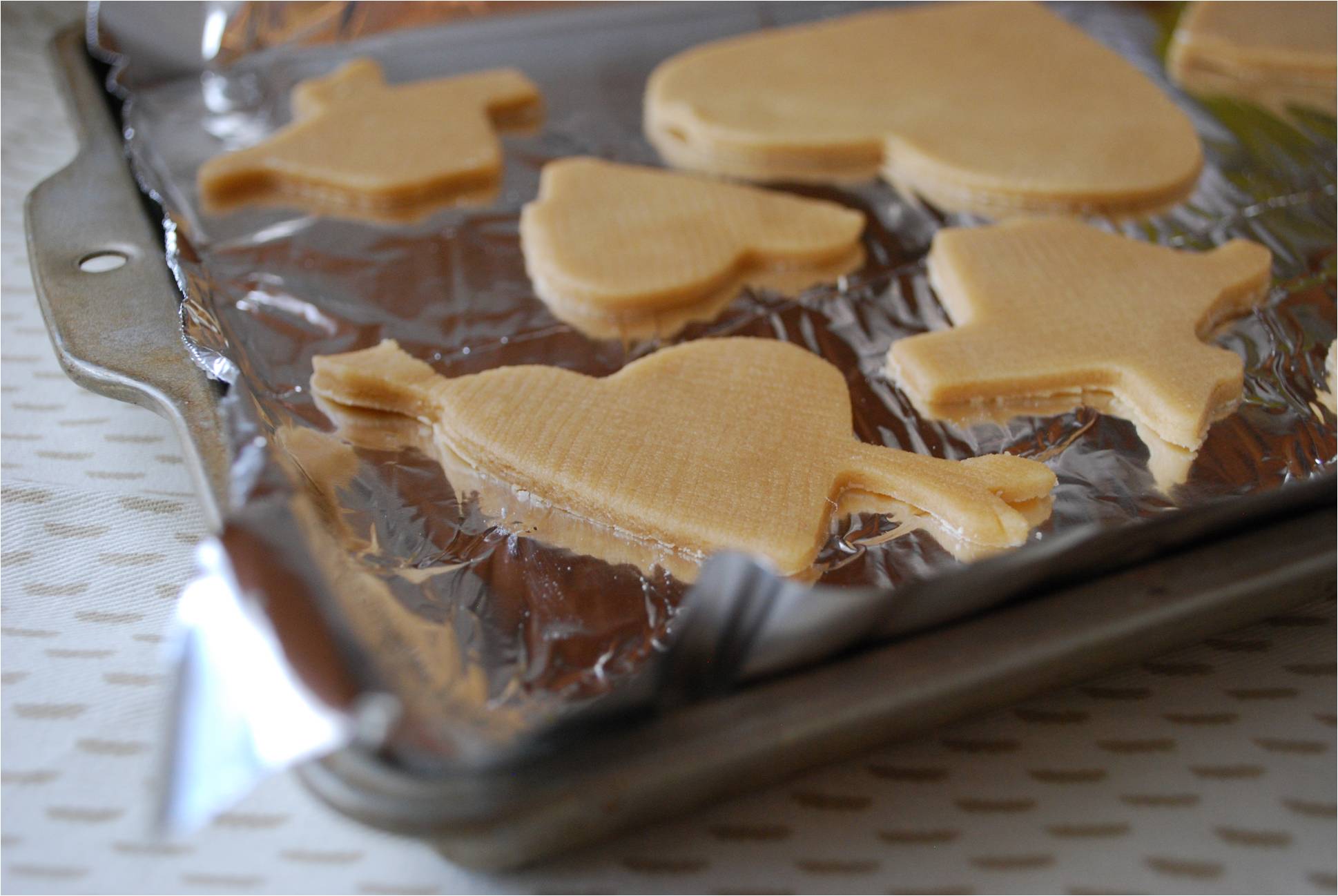 Then it’s rolled out, and cut out into shapes using cookie cutters that align with the season or occasion.